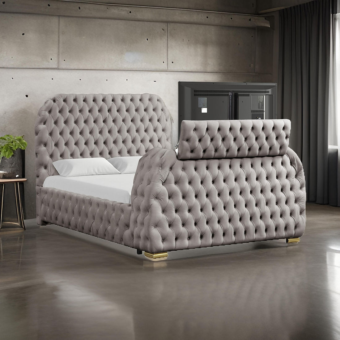 Royal Platform Bed - Grey Elevate your bedroom with the Royal Platform Bed in sleek...