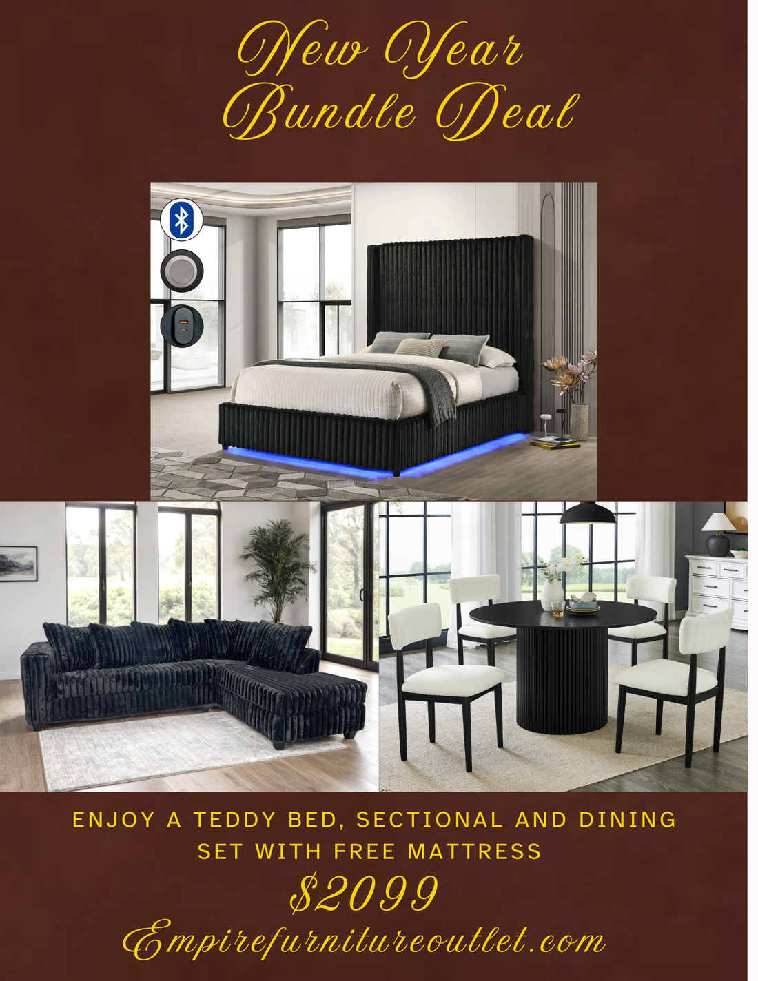 Comes with a premium corduroy full size bed sectional with ottoman and dining set ...