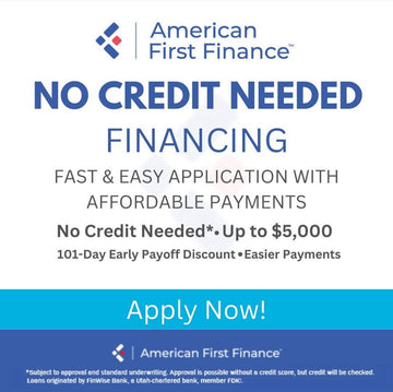 Pay off in 101 days for the cash price + a small processing fee (~$50 + tax, varies by state) to own it fast and save big on leasing costs. Empire encourages paying it off early to maximize savings—if you go over 101 days, there will be additional charges.American First Finance offers terms up to 24 months, but longer plans increase total costs due to lease fees. Empire recommends the 101-day early buyout for the best value!To Apply: Click on any image on the left or the link below.