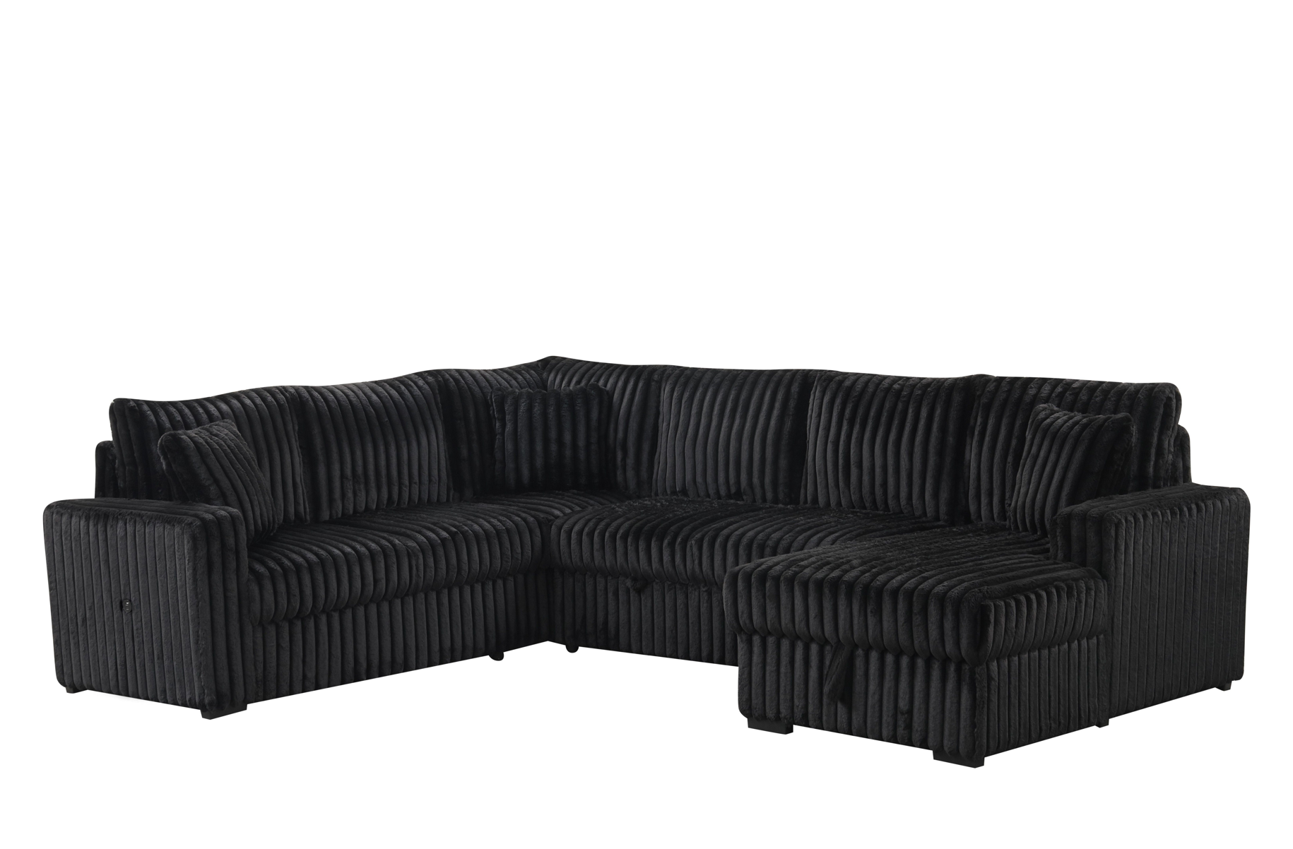 This versatile corduroy sleeper sectional effortlessly converts from cozy seating to a comfortable guest bed with its pop-up sleep surface. A spacious storage chaise keeps essentials at hand, while plush upholstery and three matching pillows provide lasting comfort and style. Its neutral tone complements any décor, making this piece an ideal centerpiece for relaxation, entertainment, and accommodating overnight guests. Built for durability, it seamlessly blends form, function, and modern appeal.