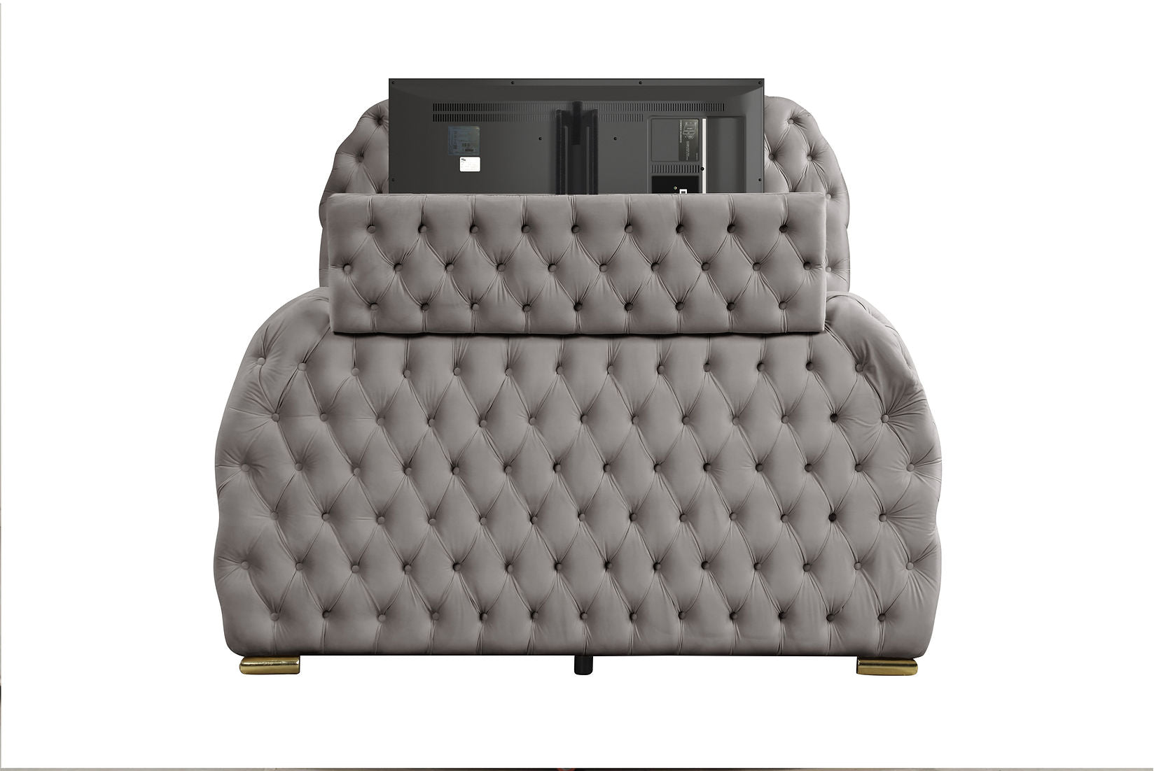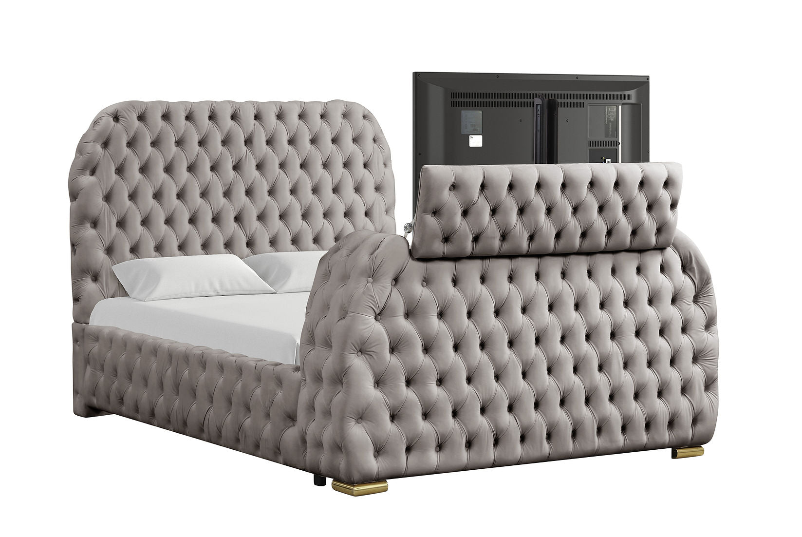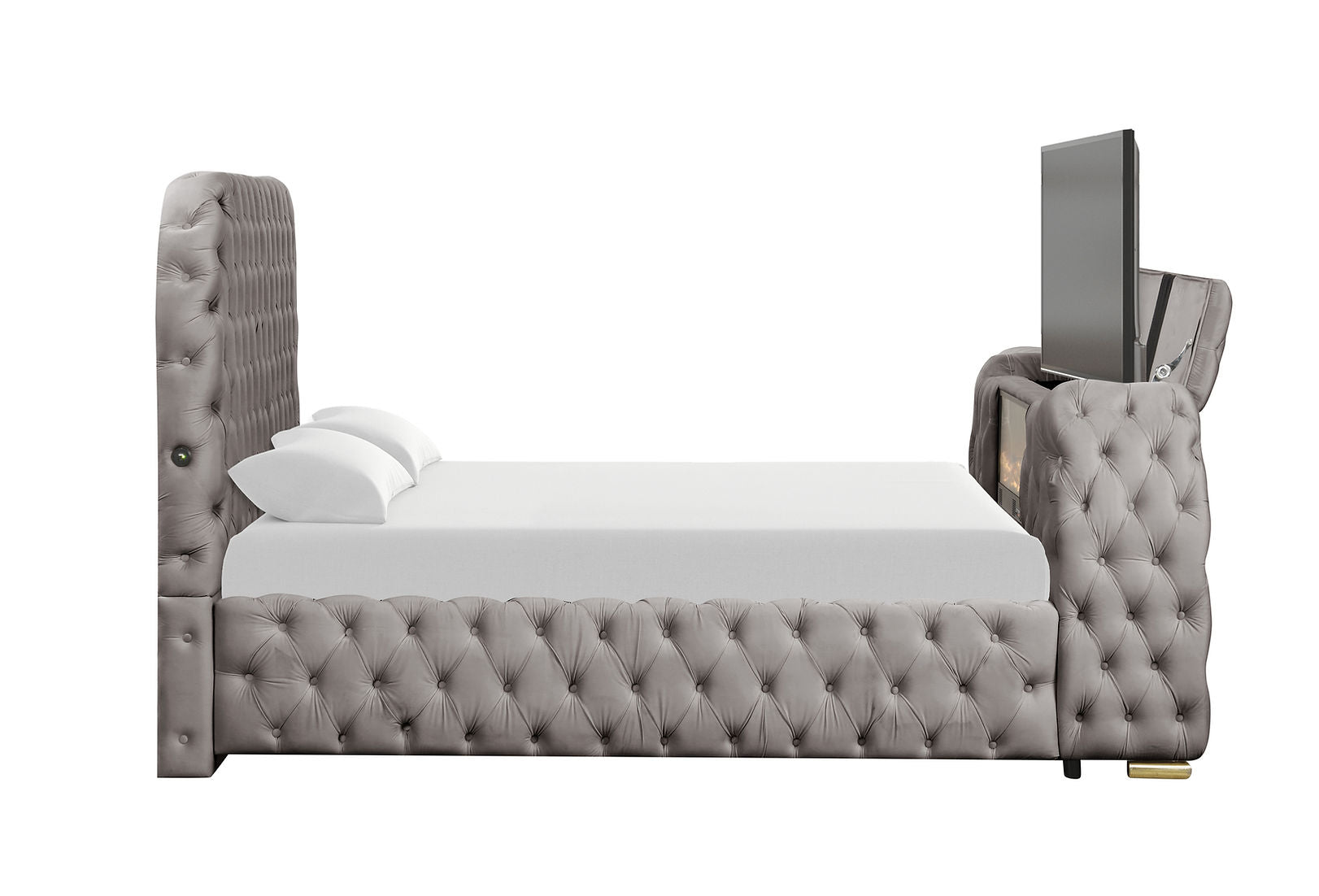 TV stand in the footboard, accommodating up to a 50" TV